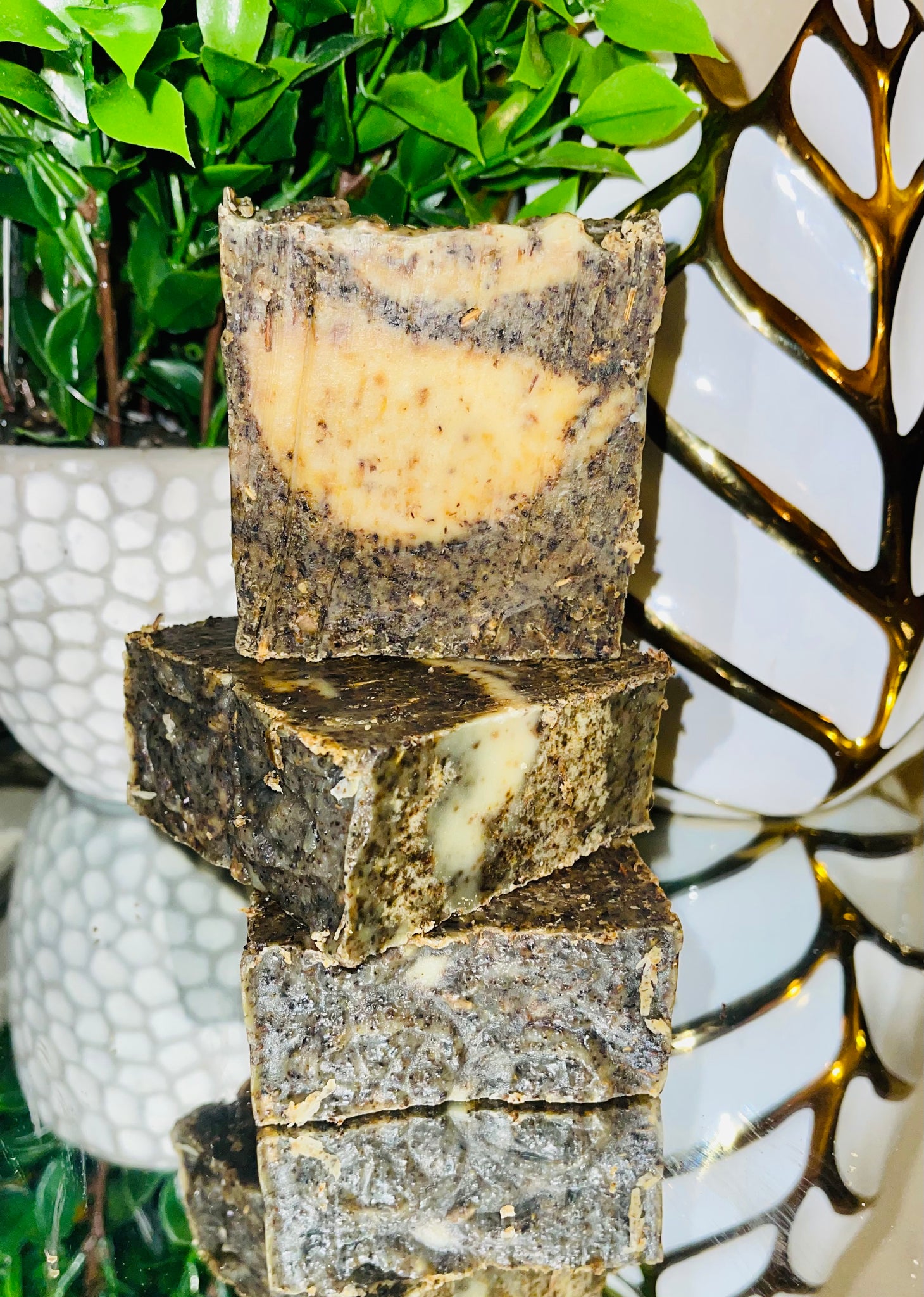 Ingredients: Olive Oil, Apple Cider Vinegar, MCT Oil, Sweet Almond Oil, Lye, Jojoba Oil and Palm Oil. Botanicals include Lavender, Rosemary, Rose Buds, Rose Petals, Oregano, Basil, Calendula, Wormwood.